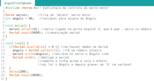 O código a seguir permite que você digite no monitor serial qual o ângulo desejado para o servo.