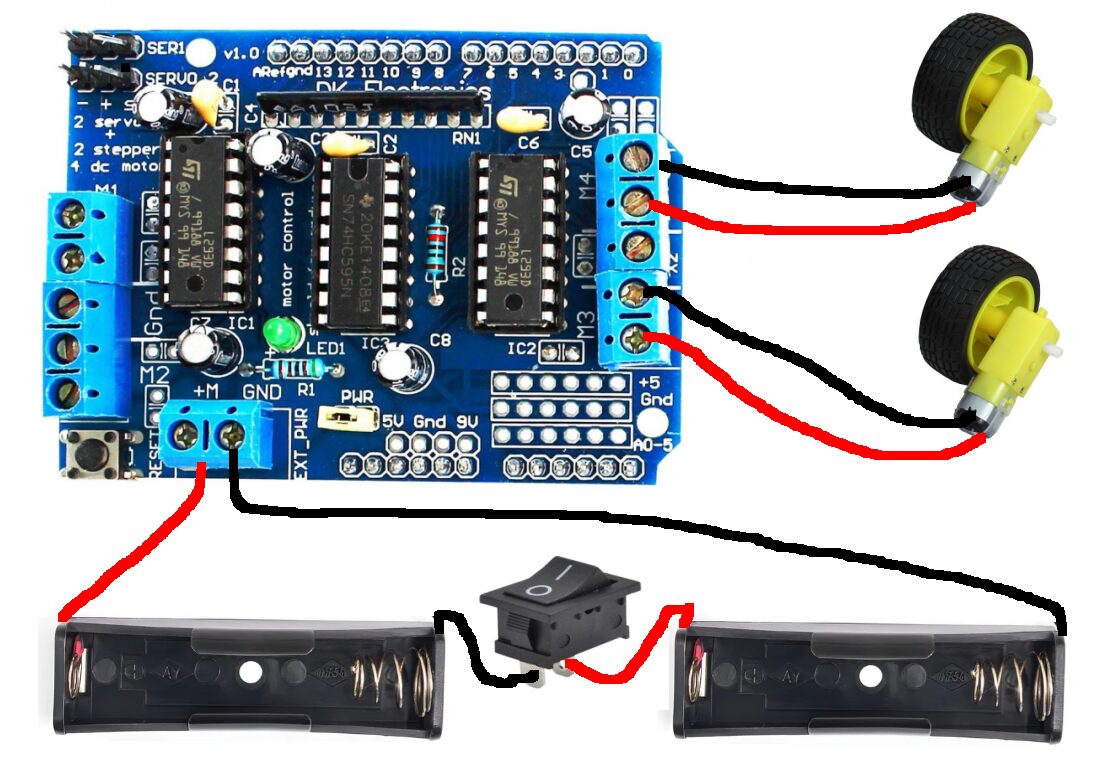 Já temos nosso carrinho funcionando e com os (motores conectados).