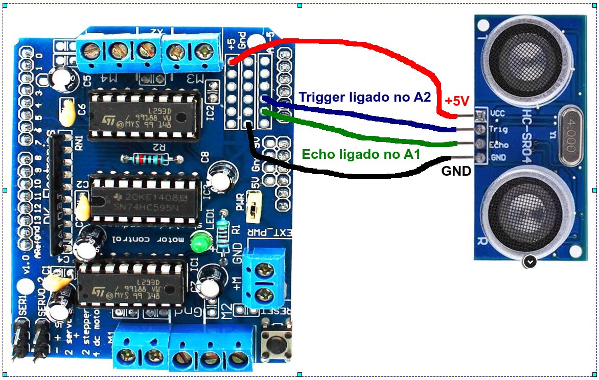 Já ligamos o (sensor de ultrassom).