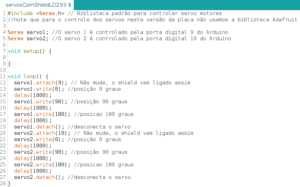 Códigos ( servosComShieldLD293 ) – Versão PDF ( __aqui__ )